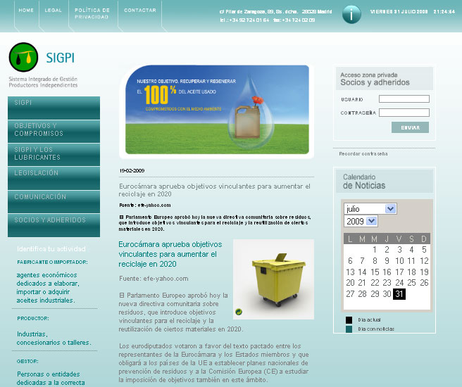 Web corporativa de SIGPI (Sistema Integrado de Gestión Productores Independientes)
