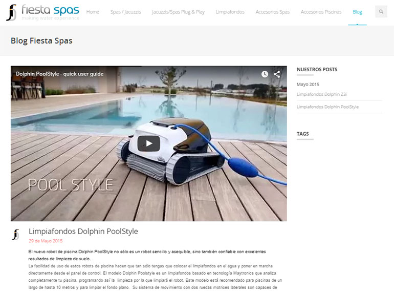 Para el desarrollo de la web corporativa de Fiesta Spas, y en base a un diseño entregado por el cliente, se realizó un Gestor de Contenidos, capaz de gestionar totalmente los contenidos de la web, muy enfocados a la muestra de sus productos.Adaptada a dispositivos moviles